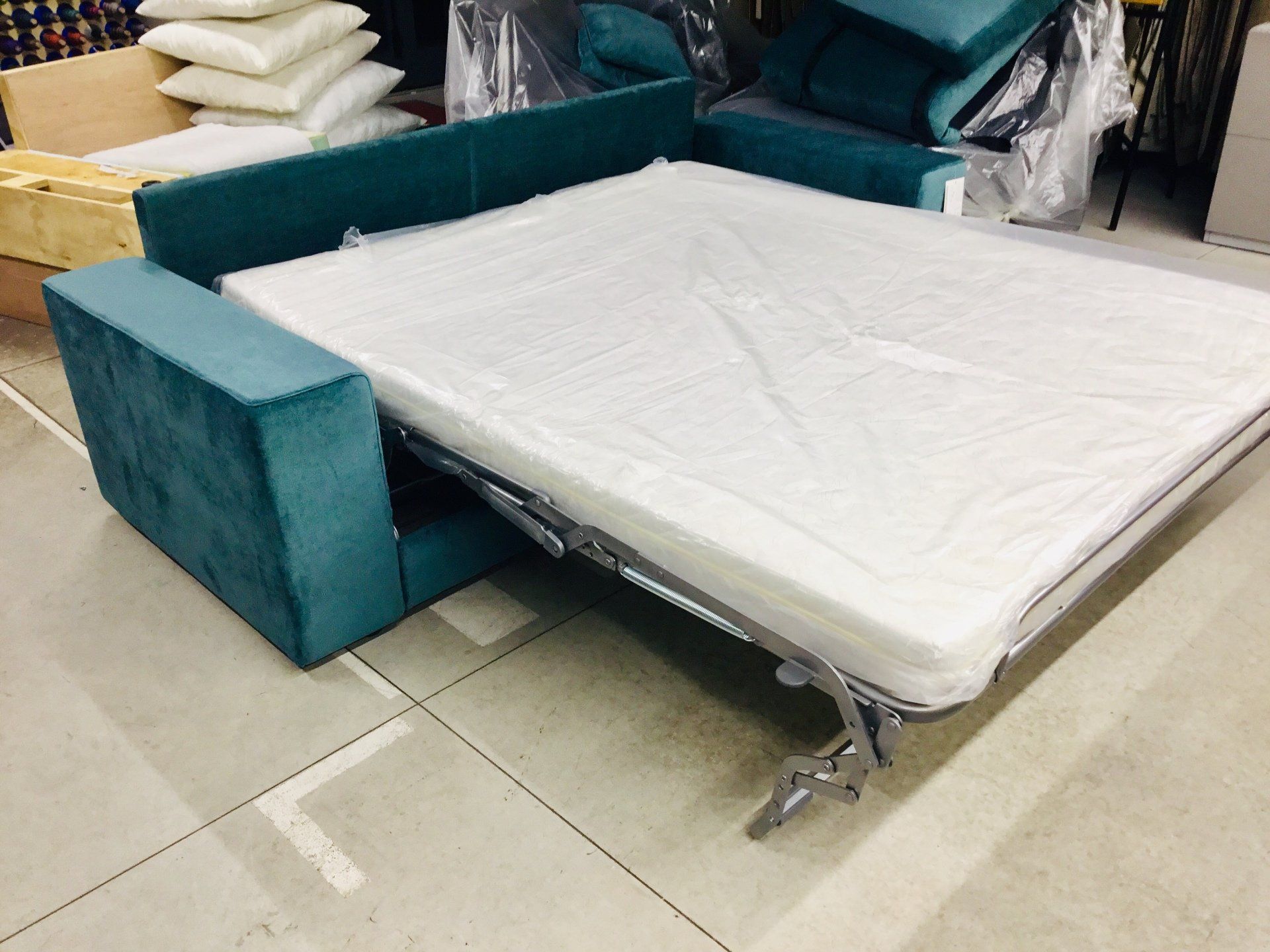 Divano letto perfetto per tante soluzioni di spazio: dalla poltrona letto con materasso da 80 cm alle soluzioni da cm. 100 – 120 – 140 – 160 (versione illustrata nelle foto) tutte con comodo materasso da 15 cm di altezza.